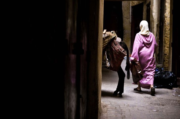 De derde locatie die we aandoen is het populaire Marrakesh. Een stad die het best is op te delen in drie delen: de buitenwijken waar toeristen nauwelijks gezien worden, het moderne centrum met een Mcdonald’s, Burger King en H&M, en het traditionele marktplein Djemaa el Fna in het oude centrum, de medina, omgeven door talloze kleine straatjes met winkeltjes en kraampjes. Alsof je je in het oude Agrabah uit de film Aladdin begeeft. Op deze laatste plek is het gemakkelijk verdwalen en daar spelen jonge locals handig op in. Dit begint al net buiten het beroemde plein, wanneer je de reusachtige Koutoubia-moskee passeert en random mannen je aanspreken alsof ze je al jaren kennen. ‘Hé, wat leuk om je hier te zien. Ga je eindelijk de stad verkennen? Ik werk in het hotel waar je slaapt, dus ik herkende je.’ De kans dat hij er daadwerkelijk een baan heeft is niet zo groot, maar het gesprek is in ieder geval gestart en ook lastig weer te beëindigen. Vooral wanneer je je eenmaal in de kronkelige straatjes van de medina bevindt, laat men je niet snel meer met rust.