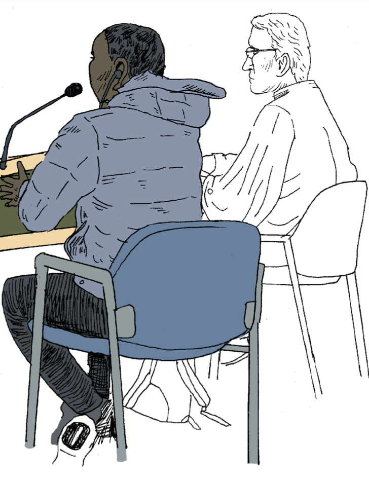 ‘U moet harder praten,’ voegt A. er voor de zekerheid nog maar eens aan toe. De rechter lijkt not amused te zijn door het idee dat hij de hele zitting zijn stem zal moeten verheffen. ‘Heeft u geen gehoorapparaat dan?’