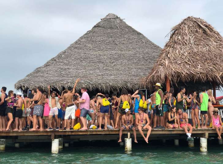 Het is iets voor 11.00 uur en nu al 27 graden. Schaars geklede, gebruinde latina’s en nieuwsgierige backpackers krijgen, nadat ze hun kaartje hebben opgehaald en een rugtas met daarin een T-shirt hebben ontvangen, instructies over het programma van het wekelijkse eilandfeest. Het duurt van 11.30 tot 22.00 uur en is op drie verschillende eilanden in Bocas. Een kaartje kost 35 dollar.