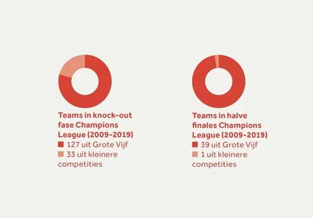 Ene Johan Cruijff zei ooit dat hij ‘een zak geld nog nooit een doelpunt had zien maken’. Schitterende woorden, al slaan ze vandaag de dag nergens meer op. Want wie betaalt, bepaalt in het hedendaagse topvoetbal. Op het eerste oog lijkt de Champions League namelijk nog een toernooi waar een voetbalwonder plaats kan vinden. Ruim 20 procent van de teams die de afgelopen tien seizoenen de knock-outfase van het toernooi bereikten, waren afkomstig uit andere competities dan de Grote Vijf: Premier League, LaLiga, Bundesliga, Serie A en Ligue 1.