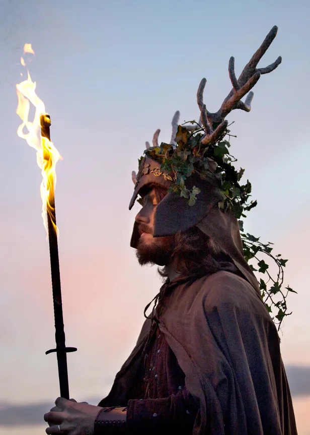 ‘Ik heb nog een oud hertengewei liggen,’ zegt Axnot. ‘Maskers en hoorns horen bij de midwintertijd.’ Dierenvermommingen zijn uitingen van oeroud heidendom, net als brandende raderen die van de bergen afrollen, het bezoeken van duizenden jaren oude heiligdommen, vuurrituelen en voorouderverering. Ook heidense cultusplekken worden opnieuw geëerd, zoals hunebedden, Stonehenge, wichelroedetochten of Vikingfeesten, zoals jaarlijks op de Shetlandeilanden.