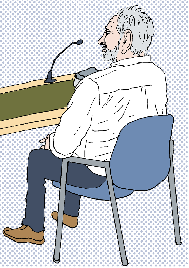 Stipt op tijd komt de 62-jarige meneer M. de rechtszaal binnenlopen. Of nee, lopen is misschien het verkeerde woord. Hij schrijdt. Met vooruitgestoken borst schrijdt M. de zaal binnen, en met de borst vooruit neemt hij plaats in het beklaagdenbankje. Meneer M. is een onvervalste babyboomer: zijn witte overhemd is ongeveer van dezelfde kleur als zijn nonchalant wapperende haren, die met een kleine slag erin een lang en voorspoedig leven doen vermoeden.