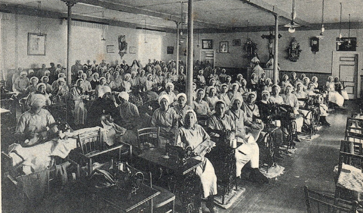 Elke dag zwaar werk verrichten onder dreiging van straf: dat was het lot van zo’n 15.000 meisjes die in de opvanghuizen van de Zusters van de Goede Herder terechtkwamen. Meestal werden ze niet door hun ouders daarnaartoe gestuurd, maar geleverd door de overheid, als maatregel om ze te beschermen tegen misbruik en verwaarlozing. Maar bij de nonnen was het vaak nog erger. Sommige vrouwen die over vroeger vertellen, over de wasfabrieken waar ze als kind moesten werken, krijgen braakneigingen als ze aan de vreselijke stank denken. De vieze kleren van katholieke gezinnen, maar ook de lakens van hotels moesten allemaal met de hand gewassen worden. Meisjes moesten dag in, dag uit, jaar in, jaar uit de gekookte kleding borstelen. Uit de dampende ketels steeg zo’n vieze geur op dat zwakke kinderen geregeld flauwvielen. Wie het niet volhield, werd hardhandig aangepakt door de nonnen. De kinderen werden geslagen of kregen een knie in hun rug. Even later stonden ze weer op een krukje om over de rand van de kuip te kunnen reiken om de volgende vieze onderbroek uit het water te halen. Niemand mocht zomaar naar de wc. Sommige meisjes hielden dat niet vol tot de vaste wc-tijden en liepen met een natte broek rond.