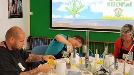 Wat ons opvalt is de samenstelling van de cursusgroep. Verder weg van een coffeeshop kun je niet zijn. Bruining reageert direct: En toch hebben we het over hetzelfde plantje als daar wordt verkocht. In zekere zin kun je stellen dat er door deze niet-psychoactieve CBD-olie eindelijk een groep door marihuana is geraakt die normaliter met een grote boog om de coffeeshop heen liep. Is de strijd daarmee eindelijk gestreden, vragen we. Nee, natuurlijk niet. Die is nog maar net begonnen.