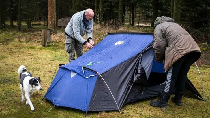 Martijn loopt naar Roel en Kathy toe, twee winterkampeerders die samen een matras uit een piepklein tentje trekken en in hun overvolle auto aan het duwen zijn. Op het oog lijkt het matras ongeveer twee keer zo groot als het tentje. We zijn een beetje weggevlucht voor het vuurwerk, vertelt Roel, een ex-beroepsmilitair, terwijl hij naar zijn hond knikt. Voor de hond, natuurlijk, maar ik had ook wel een beetje genoeg van alle knallen.
