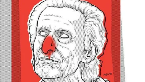 Hoe ouder hij werd, hoezeer zn ego uitdijde, tot het ongeveer de grootte had van het Concertgebouw. Daarmee overklaste het zelfs de egos van Mulisch goeie vrienden Cees Nooteboom en Hugo Claus, net als Mulisch twee over het paard getilde schrijvertjes van niks, die nog geen verkeerd gepositioneerde puntkomma zouden herkennen zelfs al beet die in hun gerimpelde scrotum. De begrafenis van Mulisch werd door de televisie uitgezonden. Het overgrote deel van de kijkers zuchtte opgelucht omdat De Neus eindelijk onder de grond verdween.