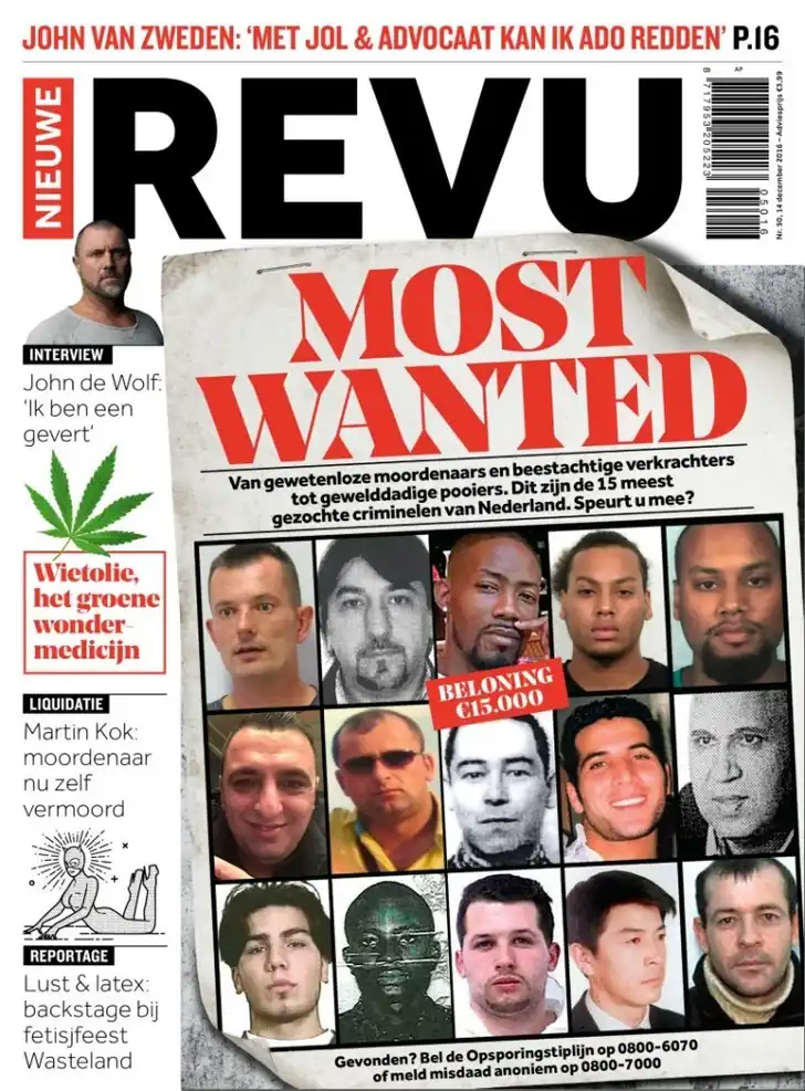 John van Zweden: 'Met Jol en Advocaat kan ik ADO redden' (Wie denkt) Op zoek naar de 15 meest gezochte criminelen van Nederland. (reportage) Martin Kok: moordenaar nu zelf vermoord (nieuws) Wietolie, het groene wondermedicijn (reportage) John de Wolf: Ik ben een gevert (interview) Lust & Latex: backstage bij fetisjfeest Wasteland. (reportage)