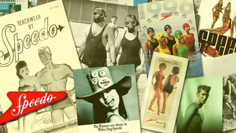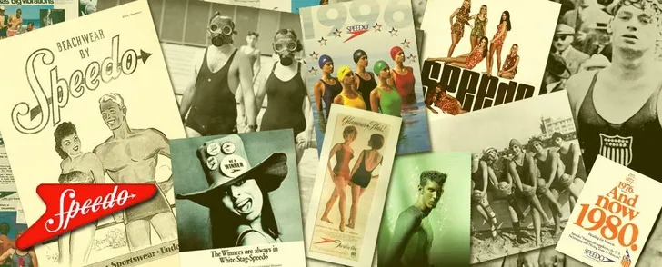 ...pond won werknemer Jim Parsonson toen hij in 1928 de beste slagzin verzon voor de badkledinglijn van de MacRae Knitting Mills: Speed On In Your Speedos. De oorspronkelijke, ietwat saaie merknaam Fortitude werd ter grave gedragen en met een boomerang ernaast was het huidige merk Speedo geboren.