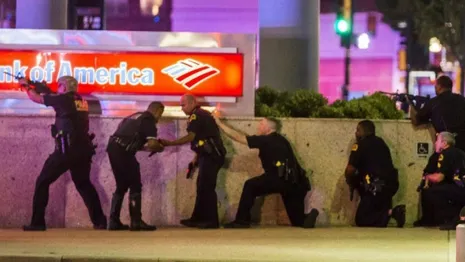 Tijdens een demonstratie tegen politiegeweld in de Amerikaanse stad Dallas is de politie donderdag zelf doelwit geworden van dodelijk geweld. Elf agenten werden neergeschoten, vijf van hen zijn overleden, maakte politiechef David Brown bekend. De politie heeft drie verdachten opgepakt, een vierde man verschanst zich in een parkeergarage. De politie vermoedt dat het om een gecoördineerde aanval gaat.