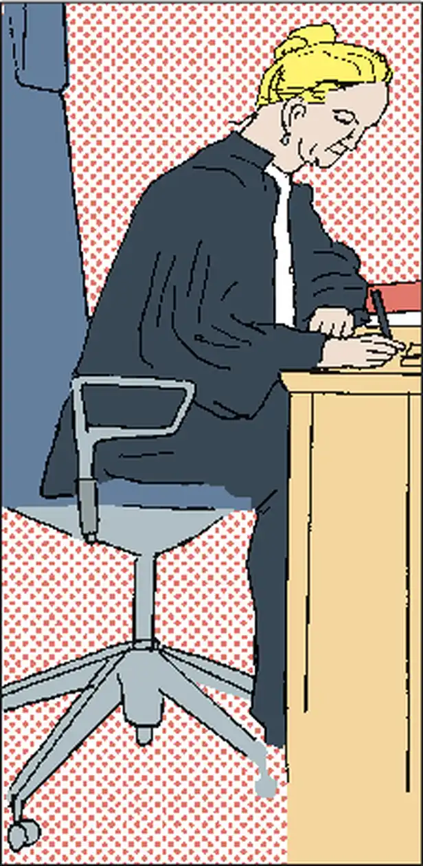 L. knikt. De rechter schudt mistroostig zijn hoofd.