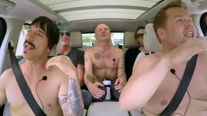 James Corden had Adele, Justin Bieber, Mariah Carrey en heel wat andere solo-artiesten in zijn auto voor zijn inmiddels fameuze 'carpool karaoke'. Nu een complete rockband en wel de Red Hot Chili Peppers, die deze week met hun nieuwe album The Getaway komen.
