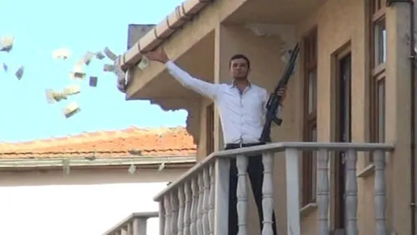 Semih Bulut, zoals de Turkse Robin Hood heet, zag na de geslaagde overval direct de politie voor de deur verschijnen. Hij wist 30.000 lira (omgerekend ongeveer 10.000 euro) buit te maken, voordat hij naar een balkon op de bovenste verdieping van de bank vluchtte.
