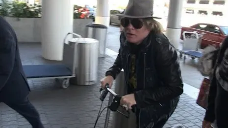 TMZ wist Axl Rose te interviewen terwijl hij op een rollator-achtig voertuig langs kwam rijden op Los Angeles International Airport. De zanger zei onder meer dat zijn gebroken voet hem niet in de weg zit en dat hij verwacht nog maar een paar weken in het gips rond te hoeven rijden.