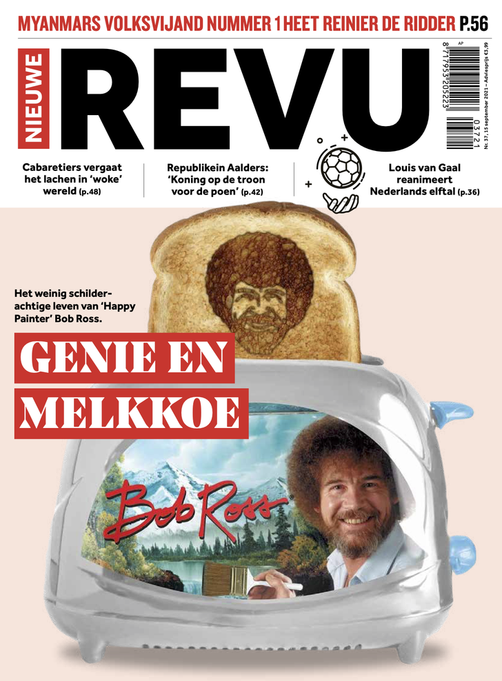Erik Brouwer onderzocht voor ons coververhaal deze week het leven van de wereldberoemde natuurschilder schilder Bob Ross. Altijd goedgehumeurd, een slaapkamerstem vanonder een vlassig afrokapsel en binnen een half uur een mooi natuurlijk tafereeltje op het doek; niet voor niets werd Bob Ross The Happy Painter genoemd. Maar was zijn leven wel zo schilderachtig? Een verhaal over de man die veel mooier afgeschilderd werd dan hij daadwerkelijk was.