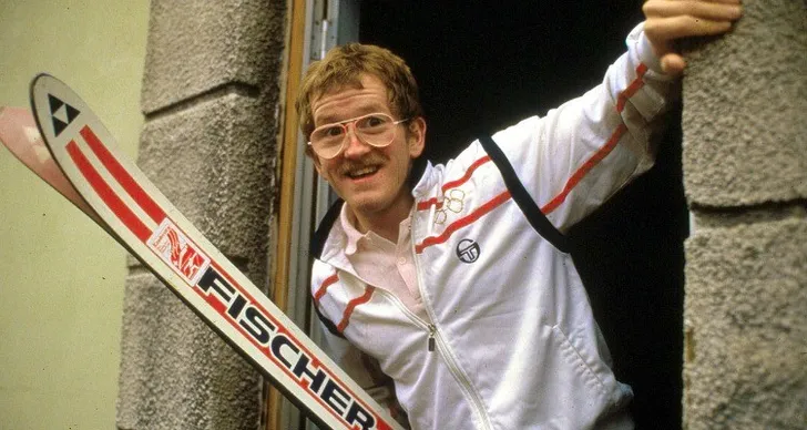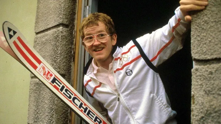 Zijn beslagen jampotglazen, vlassnorretje en kansloze prestaties maakten van Eddie the Eagle Edwards de populairste antiheld van de Winterspelen van Calgary. Het leven van de Britse schansspringer is nu verfilmd.