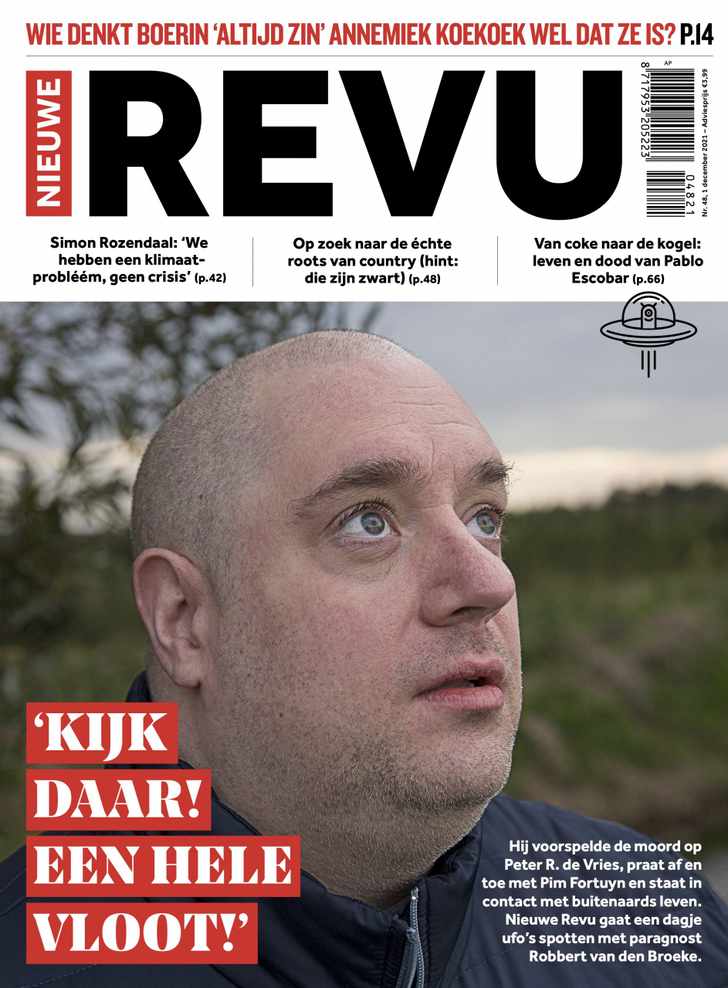 'Ik voorzie startproblemen met jouw auto. Iets met je motor. Let daar op.' Hij voorspelde de moord op Peter R. De Vries, trof restanten van aliens aan in zijn huis en heeft sporadisch contact met Pim Fortuyn. En hij is niet onomstreden: paragnost Robbert van den Broeke. Ryan Claus ging voor ons coververhaal met hem op UFO-jacht. ‘Kijk daar, een hele vloot UFO’s! Ons geduld wordt beloond.’