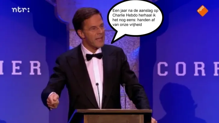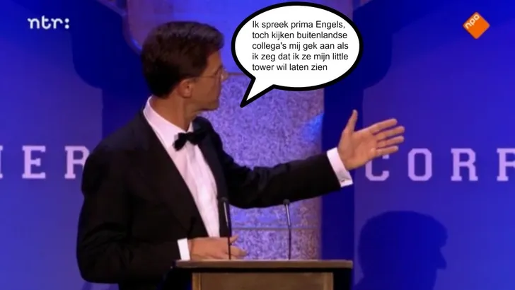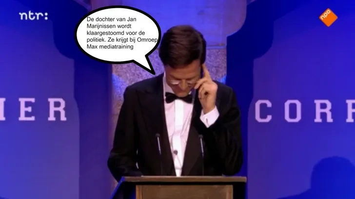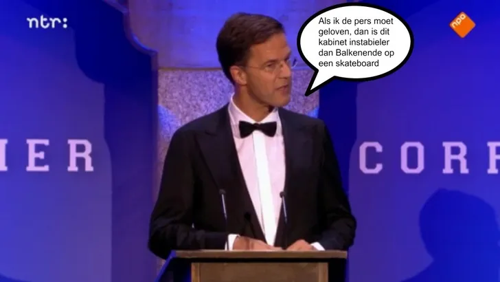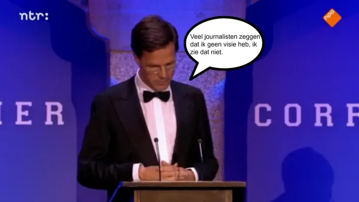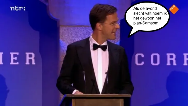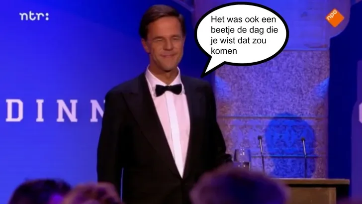 Mark Rutte las gisteren een tekst voor van "de beste komedianten en tekstschrijvers des lands" tijdens het eerste Nederlandse Correspondents' Dinner. De grappen waren best wel slecht en dat lag niet alleen aan de uitvoering van de minister-president.