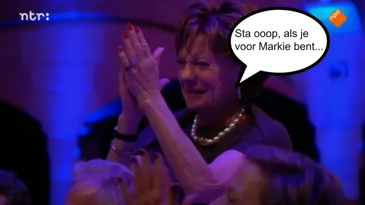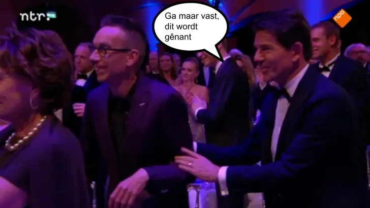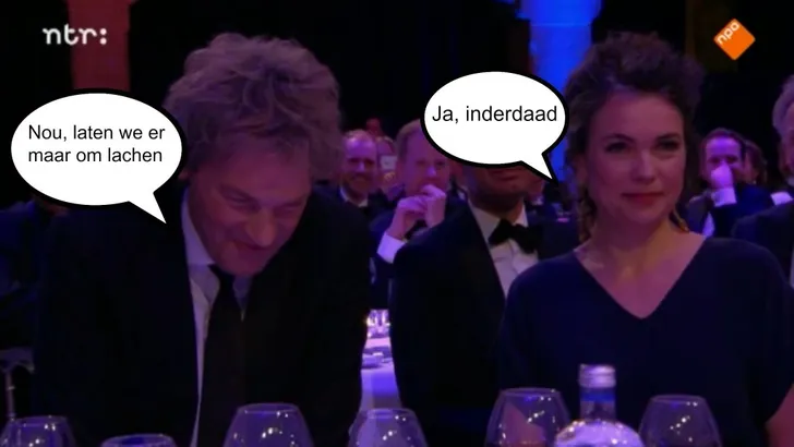 Maar gelukkig zaten er veel BN'ers in de zaal, die vinden alles grappig. Jan Slagter is wat dat betreft overigens een uitzondering. De serieuze media bleven wat buiten beeld, Neelie Kroes daarentegen was behoorlijk aanwezig. Die werd zelfs wat wild.