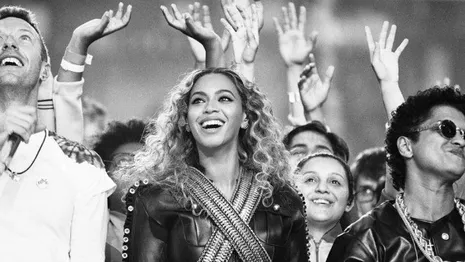Coldplay was officieel de hoofdact tijdens de half time show, maar het was Beyoncé die de show stal. Ook Bruno Mars was van de partij.