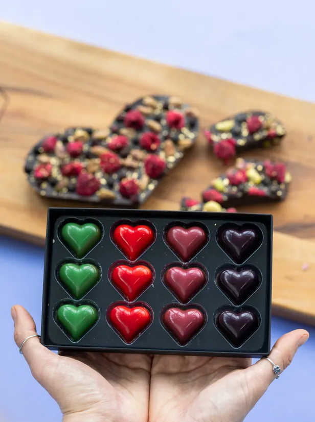 Naast diverse bonbonboxen met een liefdesthema, kun je ook chocoladeharten bestellen bij chocoladebezorgd.nl. Denk aan een hart van witte chocolade met pecannoten en koffieboontjes, pure chocoladehart met framboos en karamel of een melkchocoladehart met bastognekoekjes en suikerharten. De keuze is reuze!