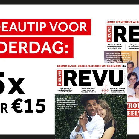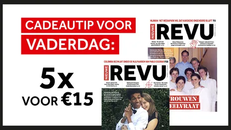 Voor slechts € 12,50 kan je pa gewoon vijf keer genieten van zijn cadeau. 5 x Nieuwe Revu, welke vader maak je daar nou niet blij mee? De meest interessante achtergrondverhalen, de actuele en beruchte 'wie denkt', de vetste interviews, de columns van Luuk Koelman, Bart Nijman, James Worthy, Leon Verdonschot en nog véél meer.