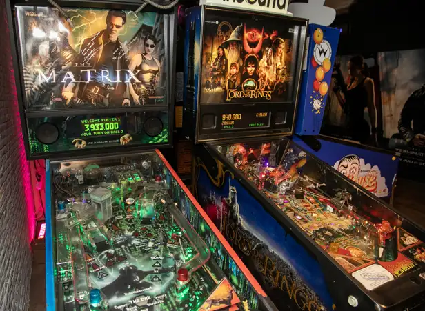 Het Dutch Pinball Museum is niet zomaar een museum. Het is het walhalla voor de liefhebber van flipperkasten. Dat begint al als je binnenkomt in De Dubbelde Palmboom, een voormalig Rotterdams pakhuis in het historische stadsdeel Delfshaven. Terwijl overal lichtjes knipperen en meer dan honderd flipperkasten een kakofonie van old school-computergeluiden produceren, wordt het oog getrokken door een prachtig mozaïek aan het plafond. Daar hangen tientallen boards, ofwel oude platen uit flipperkasten. ‘Daar zitten heel wat uurtjes in,’ glimlacht Van de Sanden als hij naar boven staart. ‘Dat is het gevolg van jarenlang verzamelen.’