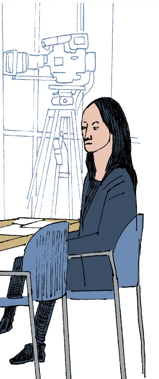 ‘Oh, oké,’ verzucht de rechter. Zwijgend wacht iedereen in spanning af. De regisseur loopt nog een paar keer zenuwachtig op en neer, tussen de camera’s, de deur en de achterwand van de rechtszaal.