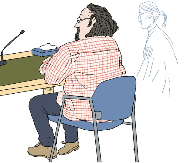 De middag valt. De rechtszaal is nog nagenoeg leeg, in de wandelgangen wacht de 52-jarige meneer K. Samen met zijn vrouw zit hij op een bankje bij de ingang, een bekertje slechte automatenkoffie in zijn handen. Zwijgend kijkt hij om zich heen, soms voorzichtig glimlachend naar zijn vrouw, dan weer nippend van zijn koffie.