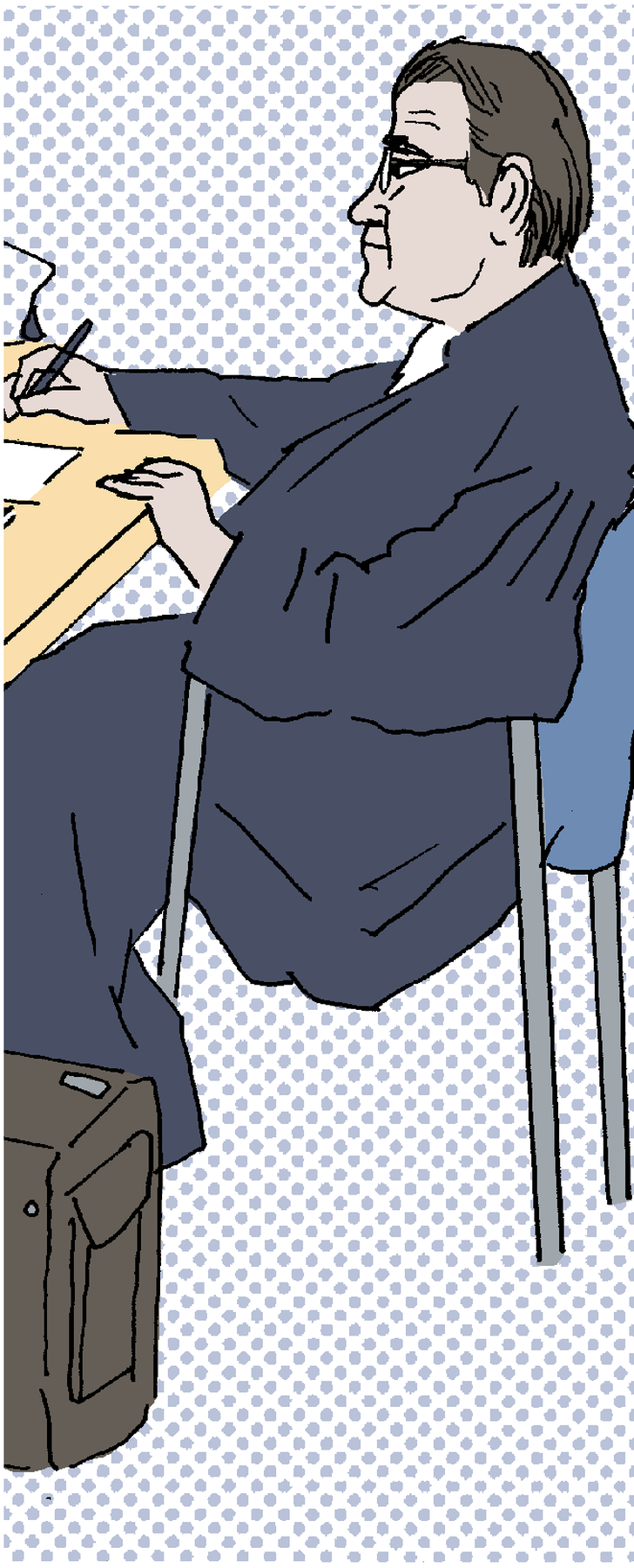 ‘Ach, ja,’ verzucht de rechter. ‘Het is allemaal niet zo handig, meneer B.’