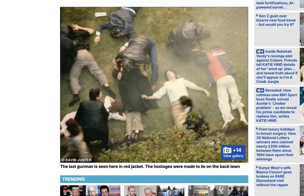 Chris Cramer, nieuwsproducent bij de BBC, stond in de centrale hal toen de aanvallers door de voordeur kwamen binnengestormd. Hij wankelde achteruit de wachtruimte in, waar de andere bezoekers al overeind waren gekomen. ‘Er zijn daar schutters,’ hijgde hij. Twee aanvallers stormden al in de lucht schietend met pistolen en schreeuwend de trap op. Lock stak zijn handen in de lucht en liep achterwaarts naar de muur van de receptie, waar Fallahi al met grote ogen stond, de koffiepot nog in zijn hand.