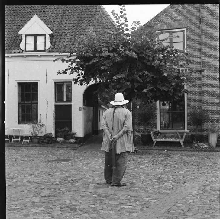 ‘Ouwehoeren. Als er niets te doen is, dan ga ik naar huis. Maar er is altijd wel wat aanloop, vanuit verschillende hoeken. Daar zit een advocaat bij, een oud-hoogleraar, een criminoloog, iemand van het Waterlooplein. Allemaal types met hun eigen verhalen, een mooie mengelmoes van wat hier woont, voor zover er nog buurtbewoners zijn. Veel mensen wonen hier drie, vier jaar en verdwijnen dan weer, omdat ze een kind krijgen en het huis te klein is. Hotel Amsterdam, zo wordt dat fenomeen genoemd.’